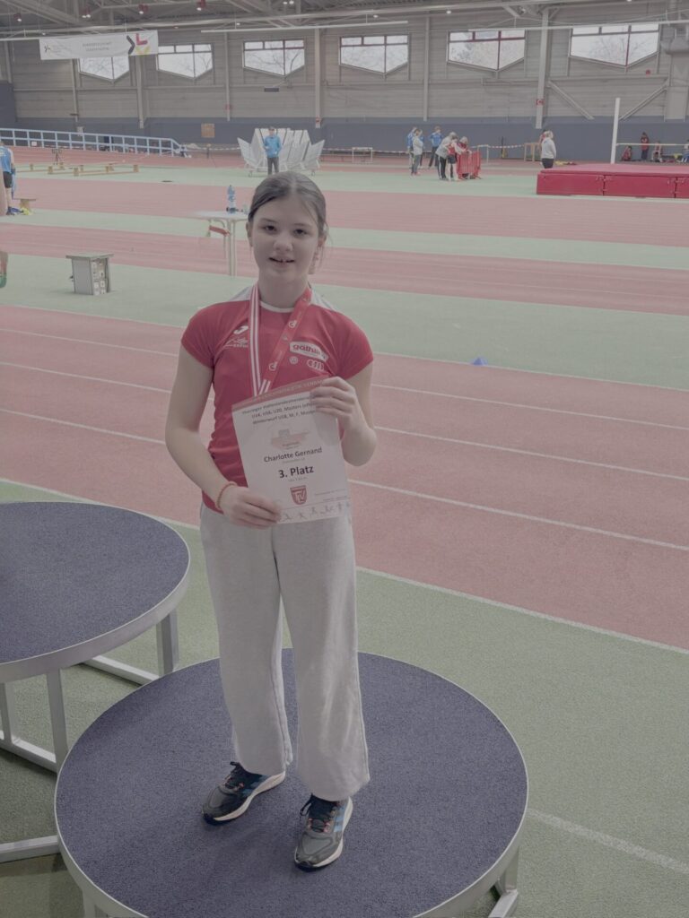 Charlotte Gernand eröffnete ihren Wettkampf im Kugelstoßen und erzielte direkt im ersten Versuch respektable 7,63 m, was ihr die Bronzemedaille einbrachte. Beflügelt von diesem Erfolg ging sie anschließend im Sprint an den Start, gewann ihren Vorlauf souverän und qualifizierte sich für das Finale, in dem sie einen guten fünften Platz erreichte.